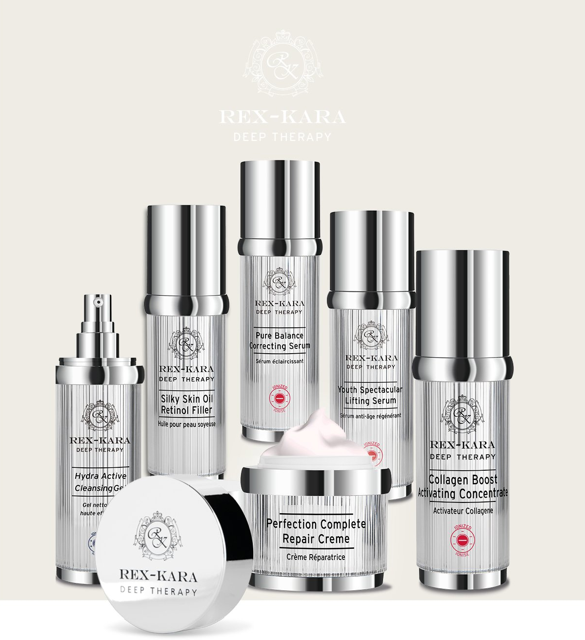 *the specially ionized REX-KARA care line. 0% PEGs, silicones, parabens, dyes and mineral oils.