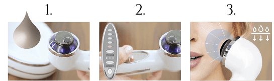 Bewegen Sie den Behandlungskopf abwechselnd vom linken und rechten Ohr unter dem Auge entlang zur Nase